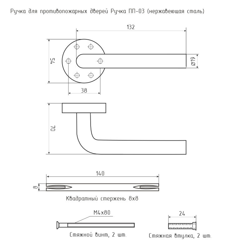 Ручка для противопожарных дверей ПП-03